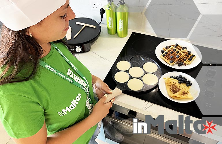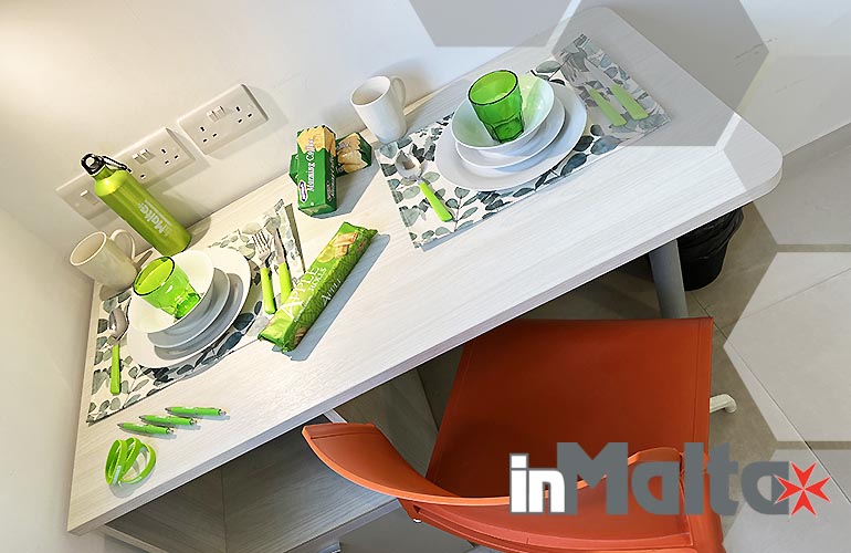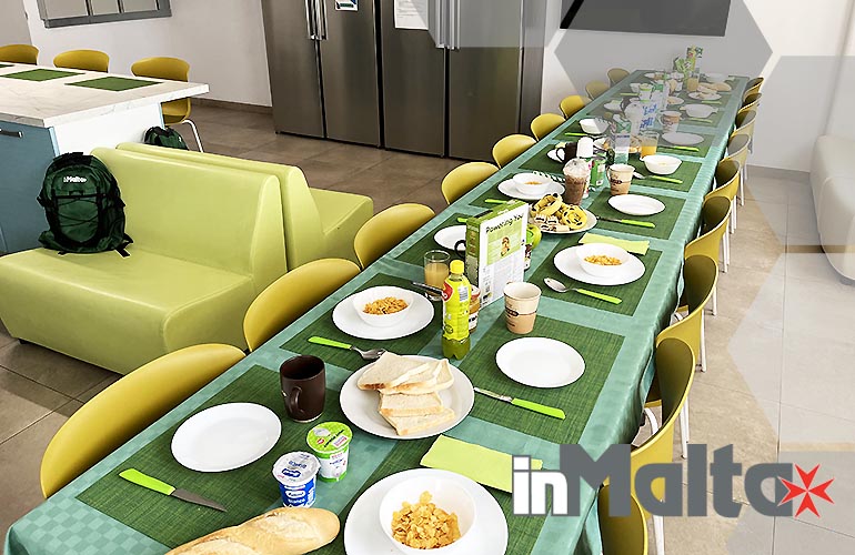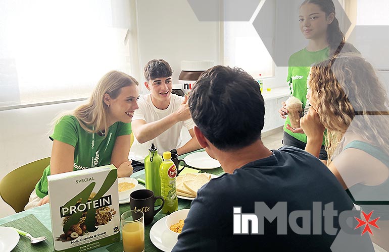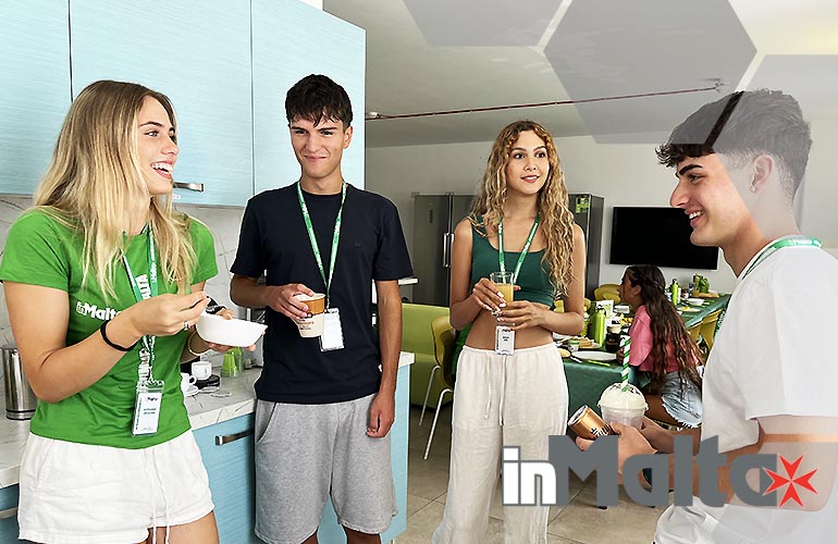 Le cucine del campus erano sprovviste dei comfort che desideravamo offrire ai nostri studenti, così, negli anni, abbiamo investito per acquistare tutto ciò che poteva essere utile alla preparazione di una colazione ricca, varia, italiana, andando incontro alle richieste dei nostri stessi studenti. I tuoi figli troveranno un cappuccinatore elettrico, perchè prendere un cappuccino schiumoso in vacanza studio è apprezzato da tutti, a volte anche per preparare una buona cioccolata; troveranno una macchinetta per il caffè espresso in cialde, forniamo gratuitamente le cialde per tutti, ma se i tuoi figli amano un tipo particolare di caffè potranno portare le cialde da casa o comprarle al supermercato del campus; troveranno un bollitore per preparare un tè caldo: alcuni studenti preferiscono prepararlo la sera e prenderlo freddo al mattino; gli studenti troveranno un tostapane per avere il profumo del pane caldo ogni mattina, senza fatica e una tostiera per trasformare in due minuti prosciutto e formaggio in una colazione veloce e nutriente; i nostri studenti troveranno frullatore e tritaghiaccio: fresco, sano e buono, un frullato ricarica di energia e per i più esigenti yogurt cremoso, frutta di stagione, ghiaccio e sciroppi naturali ed il frappè è servito. Se i tuoi figli avranno un po' di tempo in più o voglia di una colazione sfiziosa, la pancake pan è sempre molto gettonata per 7 pancake in qualche minuto! I più esigenti utilizzano spesso il waffle maker per waffle dorati con nutella, miele, frutta e yogurt. Siamo noi di inMalta ad allestire la cucina, ad inizio stagione, con tutto cià che i nostri studenti potranno utilizzare: prenotando con noi le differenze sono sotto gli occhi di tutti!