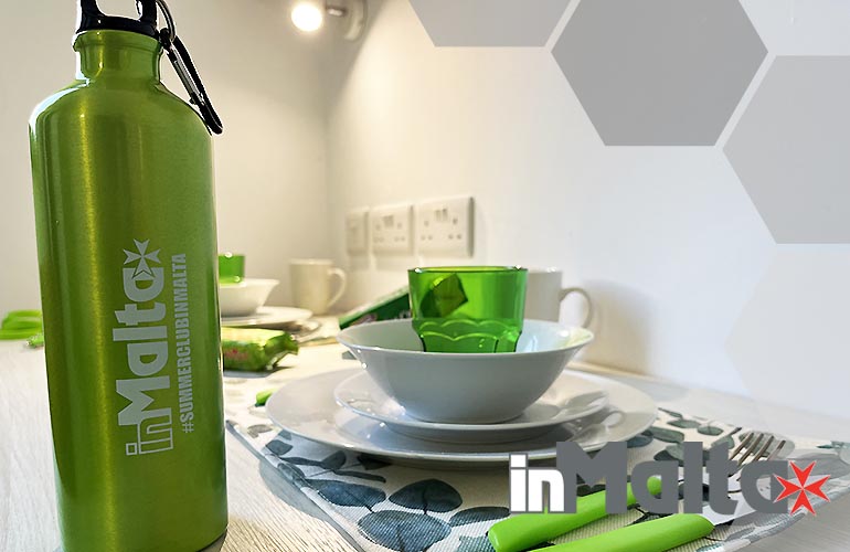 Tutti i nostri studenti diceveranno all'arrivo la borraccia inMalta da 750 ml: abbiamo installato in ogni piano un depuratore per offrire gratuitamente acqua senza limiti ai nostri studenti. Le borracce possono essere tenute in frigo.